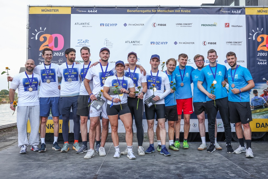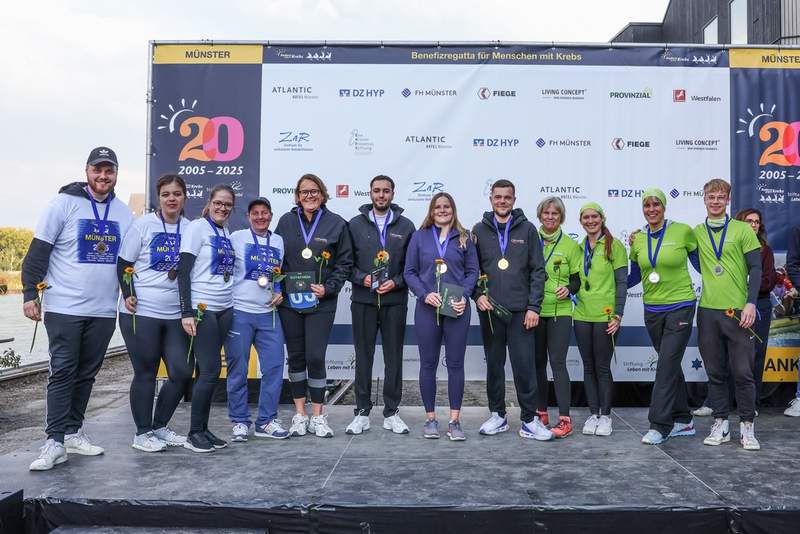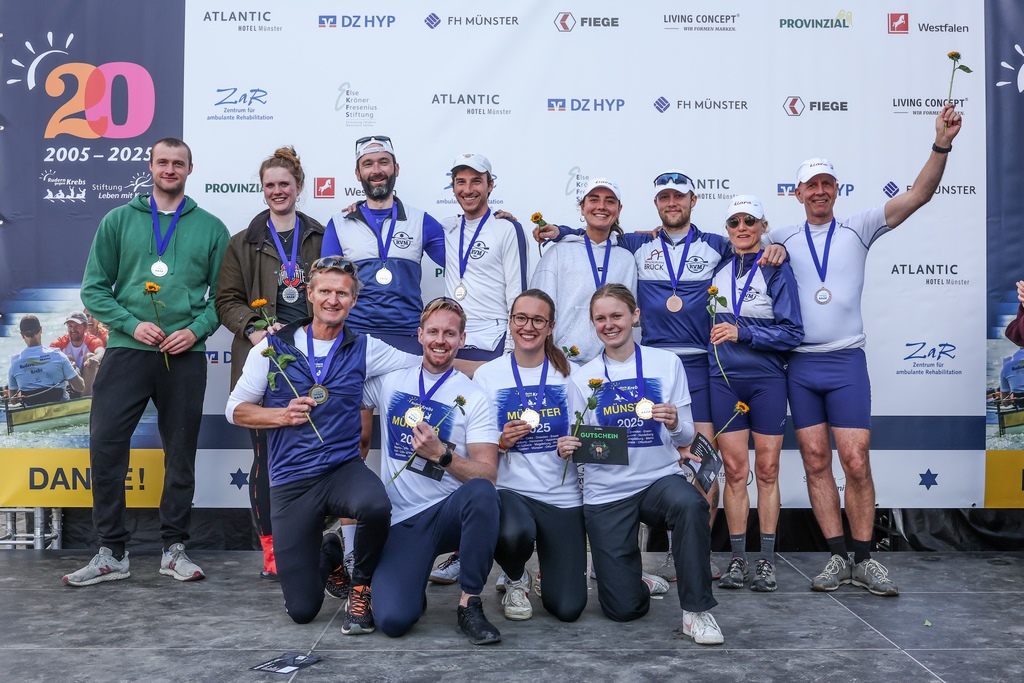 Ein herzliches Dankeschön gilt allen, die diesen Tag möglich gemacht haben: den engagierten Teilnehmenden, den vielen helfenden Händen und natürlich allen, die mit ihrer Spende oder ihrem Applaus unterstützt haben. Besonderer Dank gilt insbesondere auch den über 30 Sponsoren, Förderern und Partnern, die sich für die Regatta engagiert und dazu beigetragen haben, dass die Premiere von „Rudern gegen Krebs“ in Münster ein voller Erfolg wurde.